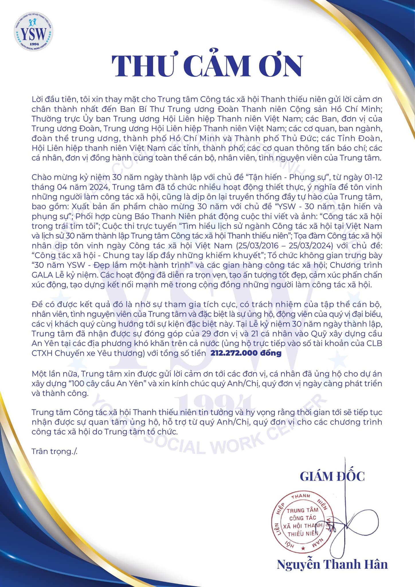 LỄ KỶ NIỆM 30 NĂM NGÀY THÀNH LẬP TRUNG TÂM CÔNG TÁC XÃ HỘI THANH THIẾU NIÊN (16/4/1994 – 16/4/2024).